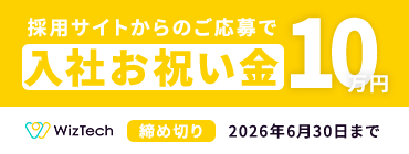 当社HPよりご応募いただき、採用となった方を対象に、お祝い金10万円を支給するキャンペーンを開始いたしました。