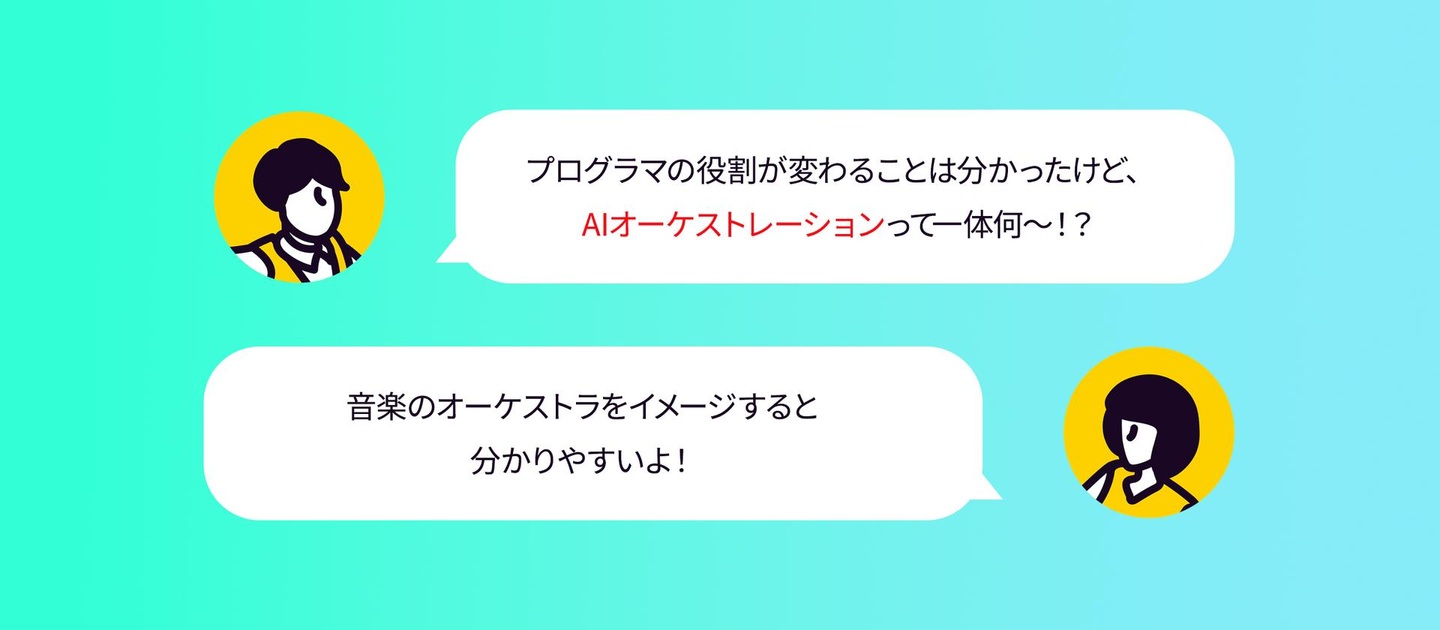 つまりは、複数のAIモデルやシステムを連携させ、統合的に機能させる技術や手法のことを表します。生成AIにも様々な種類があり、その一つひとつに得意や不得意があります。AIオーケストレーションを行なう人(AIオーケストレーター)は、タスクの要件や生成AIの特性に応じて生成AIを使い分け、システム開発を推進する必要があります。音楽のオーケストラで言う指揮者のような役割が求められるのです。